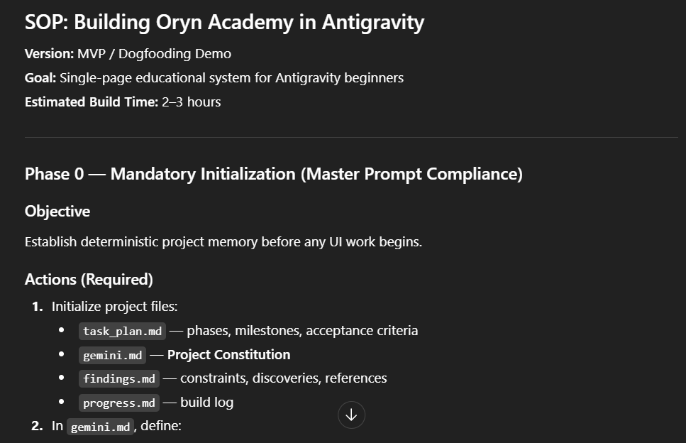 So I used the GPT project builder I crafted specifically for Antigravity projects along with all the input I gave it, my notes, ideas, and all:
